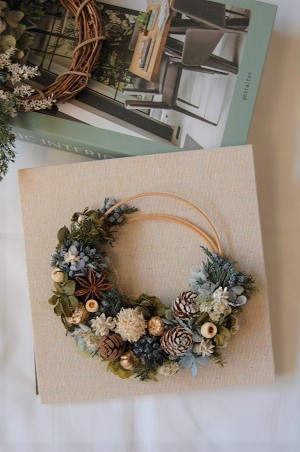 フレームの中にお花を飾り付けて、そのままご自宅の癒やし空間のインテリアにもぴったりです。