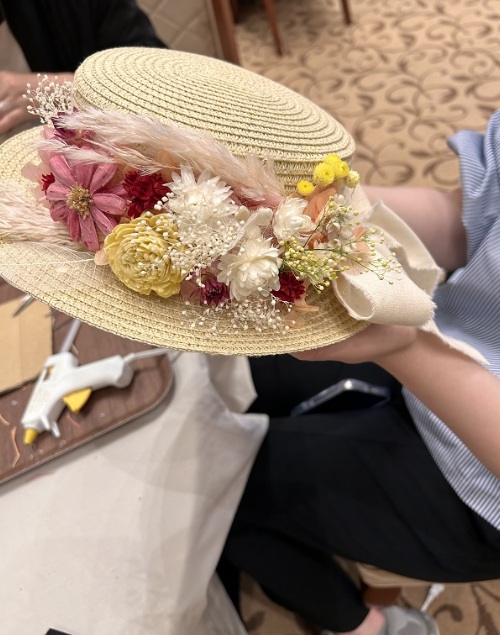雑貨感覚で楽しめるので、フラワーアレンジの経験がなくてもお楽しみ頂けます。難しいところや、全体の仕上げの際には講師がお手伝いも可能です。