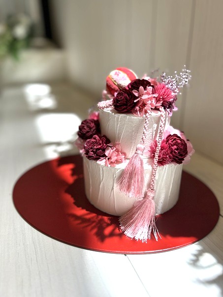 是非撮影アイテムに、オリジナルの手作りフラワーケーキを加えてくださいね。