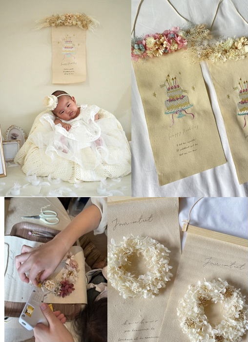 ご予約の際は、バースデー刺繍タペストリー枠にて、お願い致します。