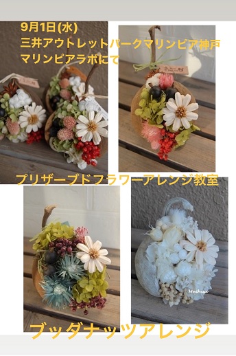 ○参加費:ブッダナッツアレンジ2800円、ブッダナッツライトトレータイプ3500円、フレームリースアレンジ4000円