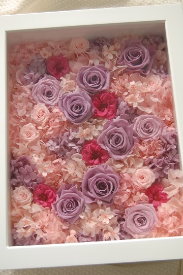 まさに花畑のようにプリザーブドフラワーを敷き詰めて