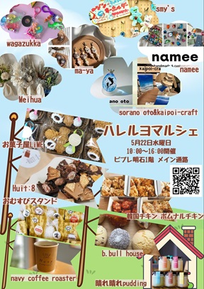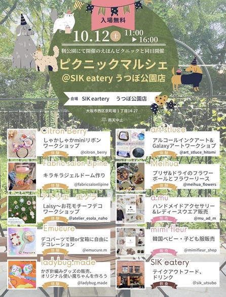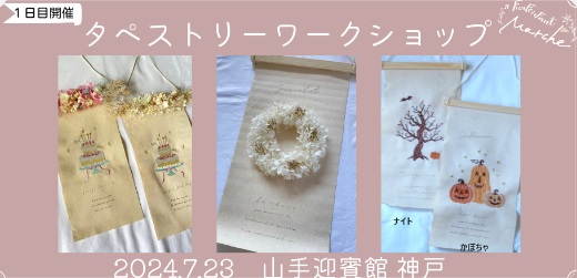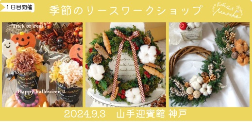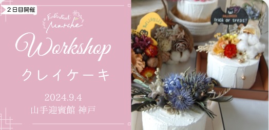 ショッピングモール楽天市場、アリババ、ヤマダモールに出店経験有り 2025年12月20日コテージでの出張、リトルチョコさんとのコラボ。愛犬とのクリスマスシルクハット花冠教室。 2025年11月19日某企業様出張ワークショップイベント。 2025年9月26日某企業様出張ワークショップイベント。 2025年1月29日『FunFenFant マルシェ』山手迎賓館神戸にて。ワークショップ開催予定。レッスンページに詳細を掲載。 2024年12月7日~1月13日 『初詣は京都八坂へ』路地裏3坪雑貨店。委託販売開催。 2024年12月6日~8日 神戸ハーバーランドumie クリスマスマーケット。高浜岸壁。ワークショップ&対面販売開催 2024年12月1日『ワークショップ in 神戸三宮東急REIホテル』神戸三宮東急REIホテルにて。ワークショップ開催予定。 2024年11月30日~1月26日 『クリスマス&お正月 in 京都八坂』路地裏3坪雑貨店2F。委託販売開催予定。 2024年11月25日26日 Foule de PLENTY in プレンティ西神中央。ワークショップ&対面販売開催予定。 2024年11月22日『ONETABLE*』クボンヌ様とコラボ企画。今回はクリスマス。お茶会開催予定。 2024年11月19日『シニア向けマルシェ in エレガーノ甲南』エレガーノ甲南にて。ブローチのワークショップ開催予定。 2024年11月13日『ワークショップ in 無印良品イズミヤショッピングセンター神戸玉津店』【公認】無印さんのアイテム使用クリスマスアレンジとガラスノツリーのワークショップ開催予定。レッスンページに詳細を掲載。 2024年11月12日『FunFenFant マルシェ』山手迎賓館神戸にて。しめ縄タッセル・和風飾りのワークショップ開催予定。レッスンページに詳細を掲載。 2024年11月2日~24日『7周年特別記念展-蝶の宴-』Venerdi storeにて。途中参加。委託販売開催予定。 2024年11月2日~30日『かんさいアクセサリーマルシェ』阪急三番街南館BI階にて。委託販売開催予定。 2024年10月31日~11月5日『PLAISIR MARCHE』マルチベース(元町・大丸店前)にて。Caprice主催の対面販売&ワークショップ開催予定。 2024年10月29日『FunFenFant マルシェ』アルモニーアッシュ姫路にて。クレイケーキのワークショップ開催予定。レッスンページに詳細を掲載。 2024年10月19日20日 Foule de PLENTY in プレンティ西神中央。ワークショップ&対面販売開催。 2024年10月14日『わんにゃんフェスタ in 三木』かじやの里メッセみき。対面販売。 2024年10月10日『ONETABLE*』クボンヌ様とコラボ企画。今回はハロウィン。お茶会開催予定。 2024年10月6日『TOMARIGI MARKET at 神戸サンボーホール』神戸サンボーホール2F。ワークショップ&対面販売開催予定。 2024年10月5日『ロハスフェスタ淡路島2024』淡路島国営明石海峡公園芝生広場。対面販売&ワークショップ開催予定。 2024年9月21日~11月17日『秋麗、彩色く京都八坂』路地裏3坪雑貨店2F。委託販売開催。 2024年9月19日20日 Foule de PLENTY in プレンティ西神中央。ワークショップ&対面販売開催。 2024年9月16日つながる市。無印良品イズミヤショッピングセンター神戸玉津店1階。ワークショップ&対面販売開催。 2024年9月14日~15日『アート&てづくりバザール』神戸国際展示場2号館。対面販売開催。 2024年9月11日~23日『かんさいアクセサリーマルシェ』京阪シティモール天満橋4Fにて。委託販売開催。 2024年9月4日『FunFenFant マルシェ』山手迎賓館神戸にて。クレイケーキのワークショップ開催。 2024年9月3日『FunFenFant マルシェ』山手迎賓館神戸にて。季節のリースワークショップ開催。 2024年8月25日TOMARIGI MARKET in SUMMER 2024。護国神社にて。対面販売&トライヤル職業体験フェスティバル開催。 2024年8月10日11日第10回つながる市。無印良品イズミヤショッピングセンター神戸玉津店1階。ワークショップ&対面販売開催。 当日の様子ブログ記事掲載1日目 当日の様子ブログ記事掲載2日目 2024年8月6日7日 Foule de PLENTY in プレンティ西神中央。ワークショップ&対面販売開催中止。 2024年7月29日 Foule de PLENTY in プレンティ西神中央。ワークショップ&対面販売開催→中止。 2024年7月24日『FunFenFant マルシェ』山手迎賓館神戸にて。クレイケーキのワークショップ開催。 2024年7月23日『FunFenFant マルシェ』山手迎賓館神戸にて。タペストリーワークショップ開催。 2024年7月13日14日第4回ナイトロハスミーツ明石。明石城公園にて開催。 2024年7月6日7日「Caprice~plaisir maeiche~」三宮センター街にてCaprice主催のイベント。ワークショップ&対面販売開催。 2024年7月5日クボンヌ様とコラボ企画『ラベンダーのお茶会』開催。 2024年6月23日神戸ハンドメイドマルシェ2024。神戸国際展示場3号館。ワークショップ開催。 2024年6月12日『FunFenFant マルシェ』アルモニーアッシュ姫路にて。カンカン帽のワークショップ(親子バージョン有)開催。 2024年6月11日『FunFenFant マルシェ』アルモニーアッシュ姫路にて。クレイケーキのワークショップ開催。 2024年6月8日第9回つながる市。無印良品イズミヤショッピングセンター神戸玉津店1階。 2024年6月2日~30日かんさいアクセサリーマルシェ in NU茶屋町。4階STAND PARK 。6月22日ワークショップ開催。 